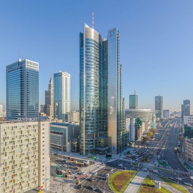 Rondo 1 comprises an impressive 40-floor (192 meters high) glass tower located on Jana Pawła II Av. and a 10-floor building on Świętokrzyska St. The scheme offers ca 60,000 sq m of office space and 5,000 sq m of retail space. Tenants and guests have 500 parking spaces at their disposal.